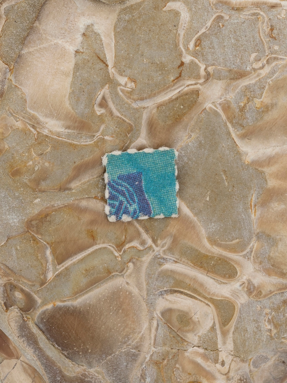 Fossilized coral (~152 million years old, Jura, CH), fossilized ammonite (~165 million years old, Bern, CH), segment of fossilized nautilus (~199 million years old, Aargau, CH), LSD blotter tabs, projector, video loop, lenses