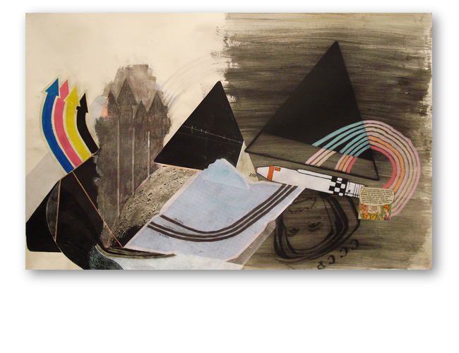 graphite, acrylic, colored pencil, charcoal and collage on paper 24"x40"