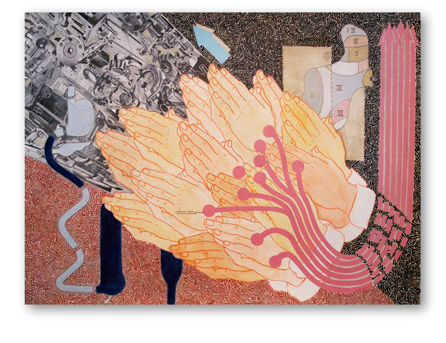 graphite, acrylic, colored pencil and collage on paper 22"x30"