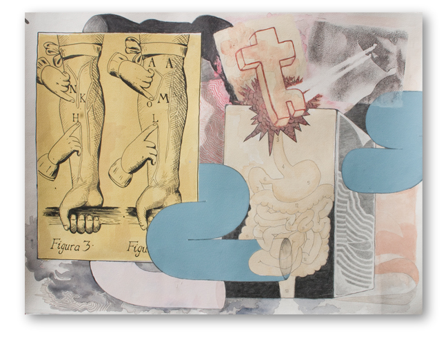 graphite, acrylic, colored pencil and xerox transfer on paper 24”x32”